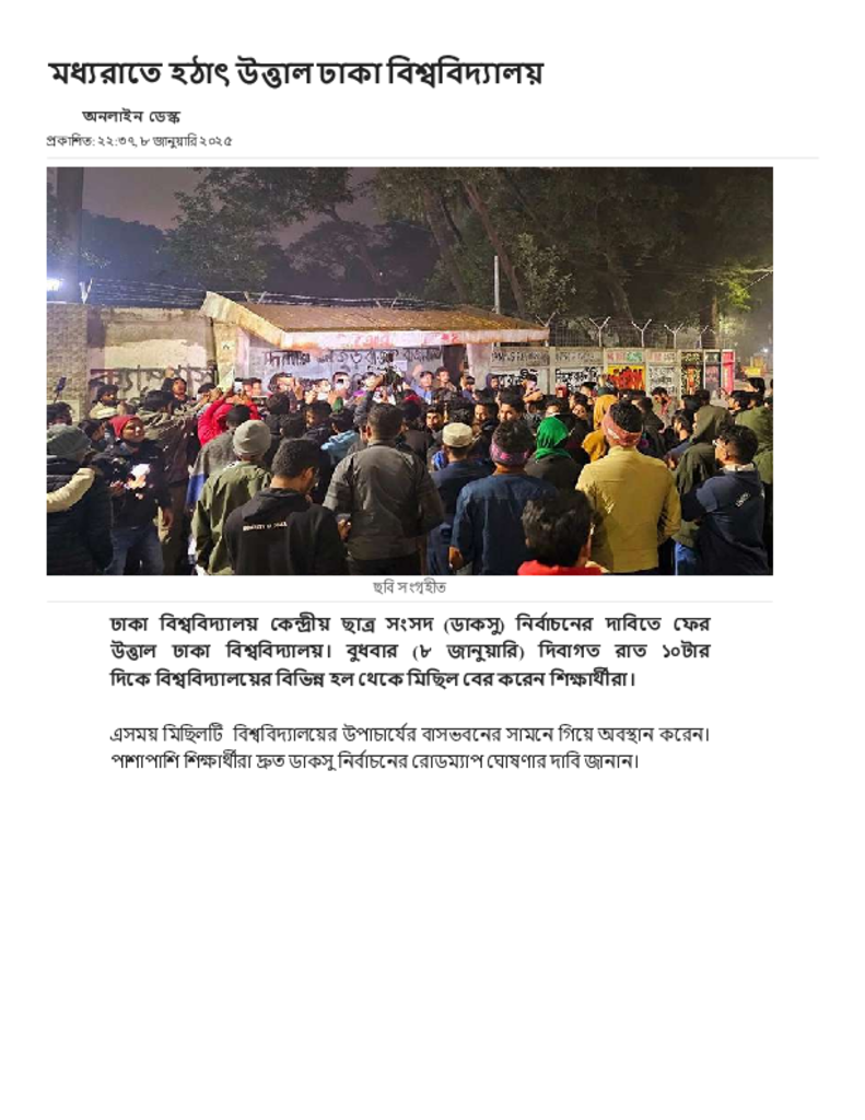 মধ্যরাতে হঠাৎ উত্তাল ঢাকা বিশ্ববিদ্যালয়.pdf Published on 08 January 2025 Newspaper দৈনিক জনকণ্ঠ Category General Education General Education Download