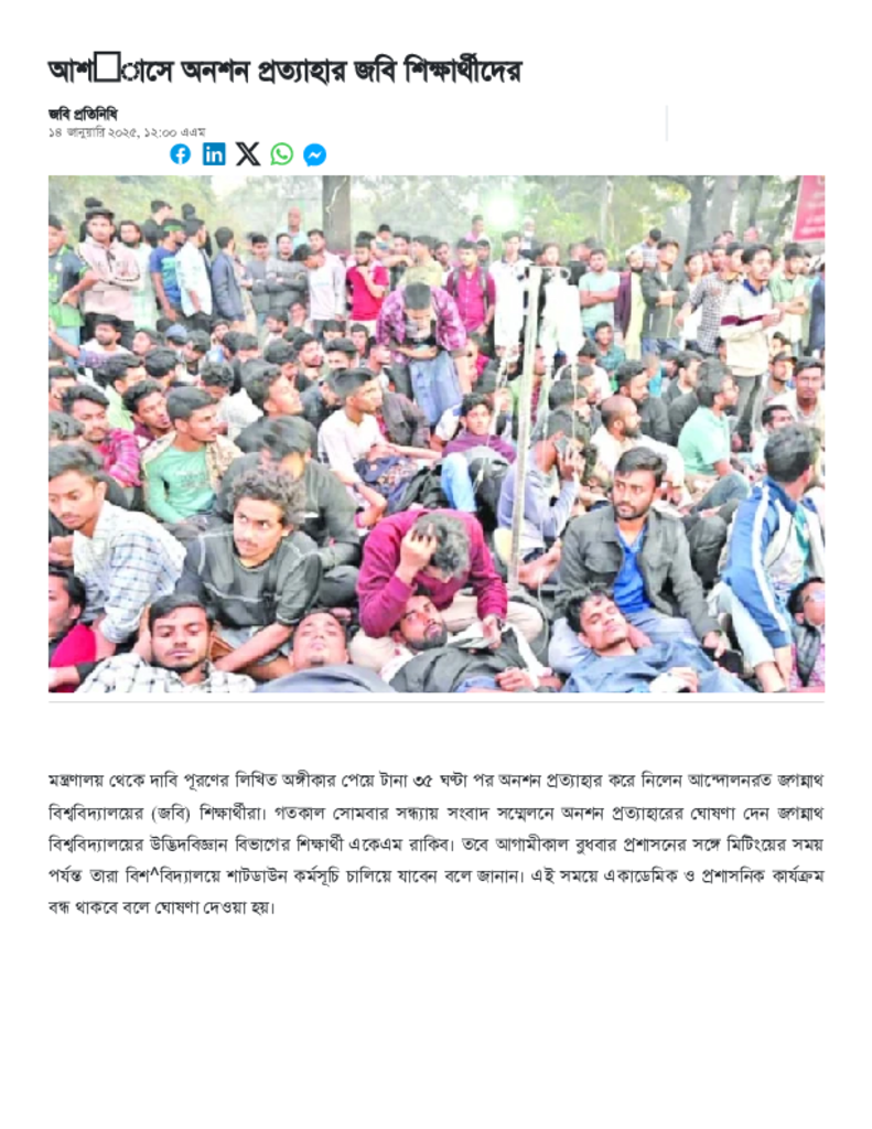 আশ^াসে অনশন প্রত্যাহার জবি শিক্ষার্থীদের.pdf Published on 14 January 2025 Newspaper দৈনিক আমাদের সময় Category General Education General Education Download