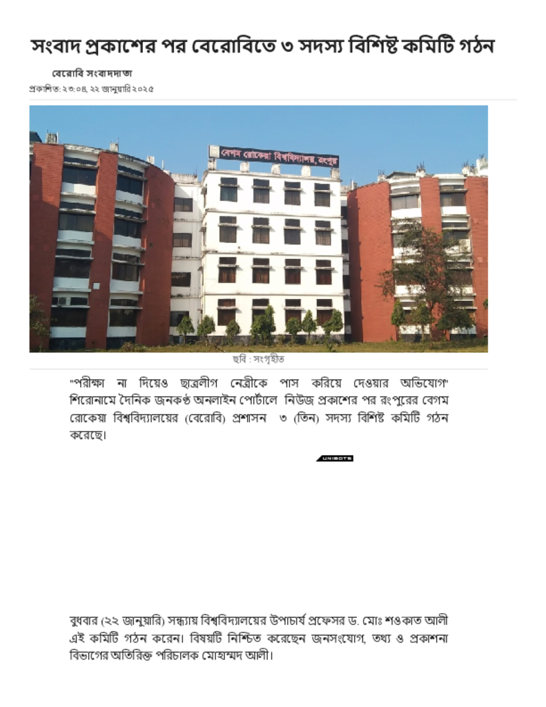 সংবাদ প্রকাশের পর বেরোবিতে ৩ সদস্য বিশিষ্ট কমিটি গঠন.pdf Published on 22 January 2025 Newspaper দৈনিক জনকণ্ঠ Category General Education General Education Download