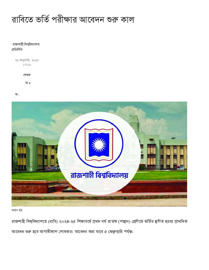 রাবিতে ভর্তি পরীক্ষার আবেদন শুরু কাল.pdf Published on 26 January 2025 Newspaper দৈনিক কালের কন্ঠ Category Admission / Seat Problem General Education Download