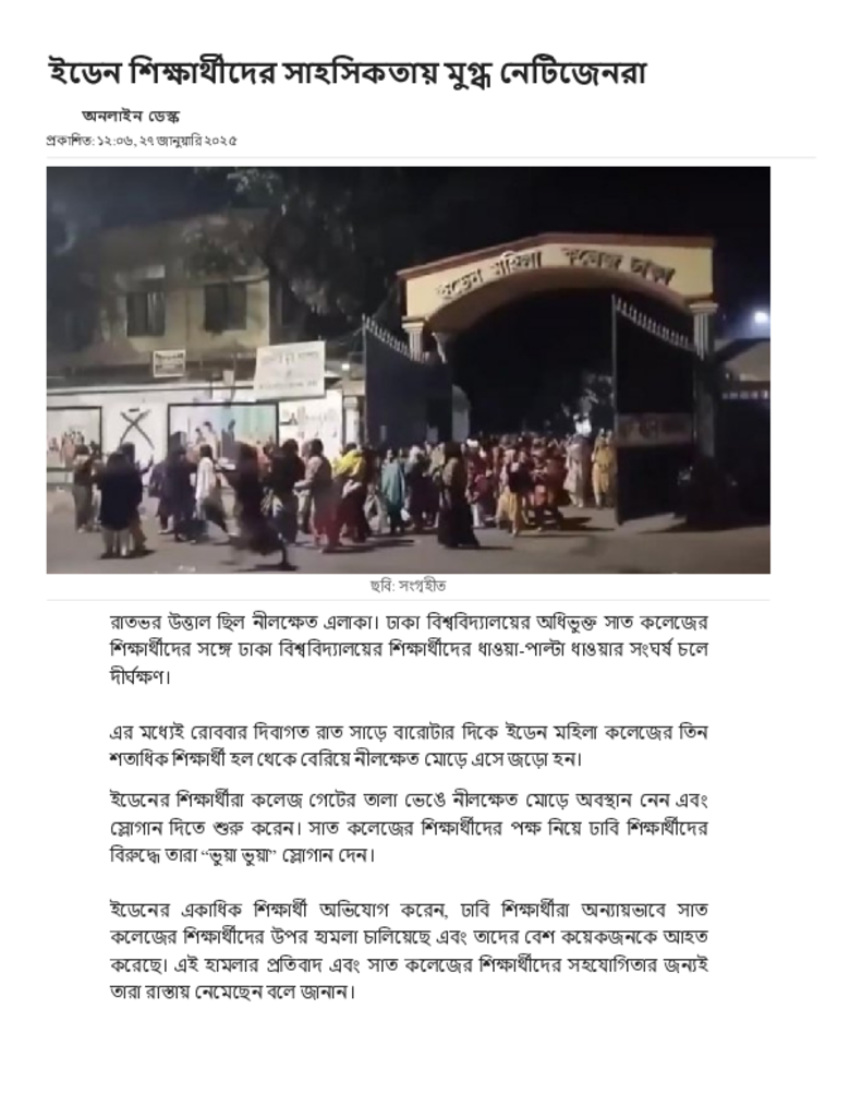 ইডেন শিক্ষার্থীদের সাহসিকতায় মুগ্ধ নেটিজেনরা.pdf Published on 27 January 2025 Newspaper দৈনিক জনকণ্ঠ Category Campus Terrorism General Education Download