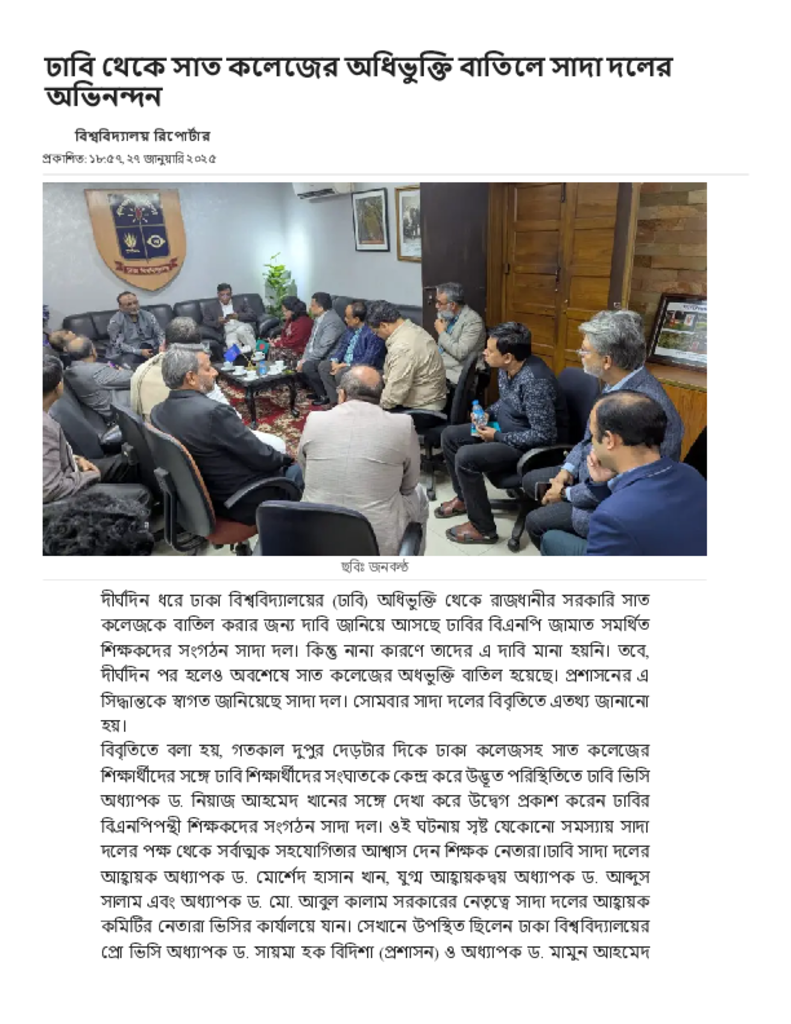 ঢাবি থেকে সাত কলেজের অধিভুক্তি বাতিলে সাদা দলের অভিনন্দন.pdf Published on 27 January 2025 Newspaper দৈনিক জনকণ্ঠ Category General Education General Education Download
