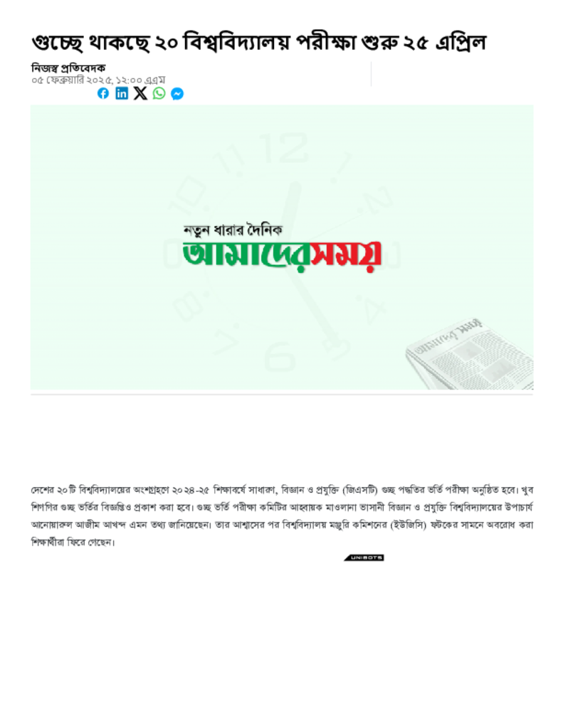 গুচ্ছে থাকছে ২০ বিশ্ববিদ্যালয় পরীক্ষা শুরু ২৫ এপ্রিল.pdf Published on 05 February 2025 Newspaper দৈনিক আমাদের সময় Category Admission / Seat Problem General Education Download