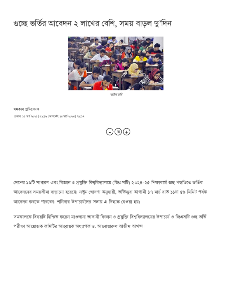 গুচ্ছে ভর্তির আবেদন ২ লাখের বেশি, সময় বাড়ল দু’দিন.pdf Published on 15 March 2025 Newspaper দৈনিক সমকাল Category Admission / Seat Problem General Education Download