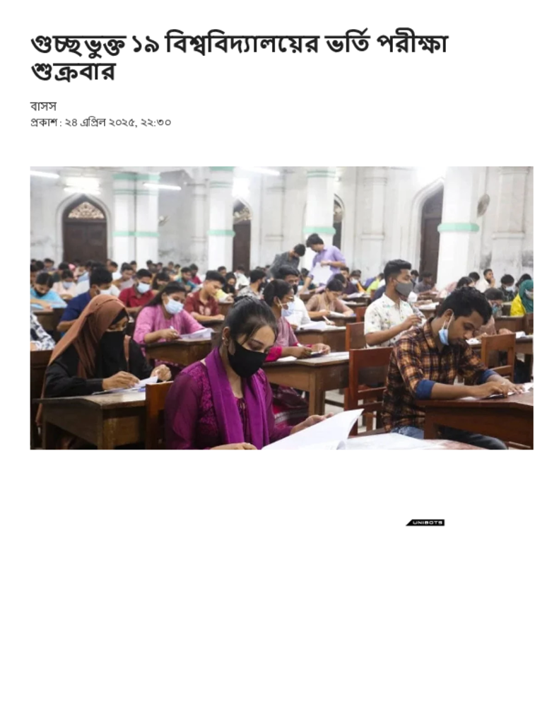 গুচ্ছভুক্ত ১৯ বিশ্ববিদ্যালয়ের ভর্তি পরীক্ষা শুক্রবার.pdf Published on 24 April 2025 Newspaper দৈনিক ইত্তেফাক Category Admission / Seat Problem General Education Download