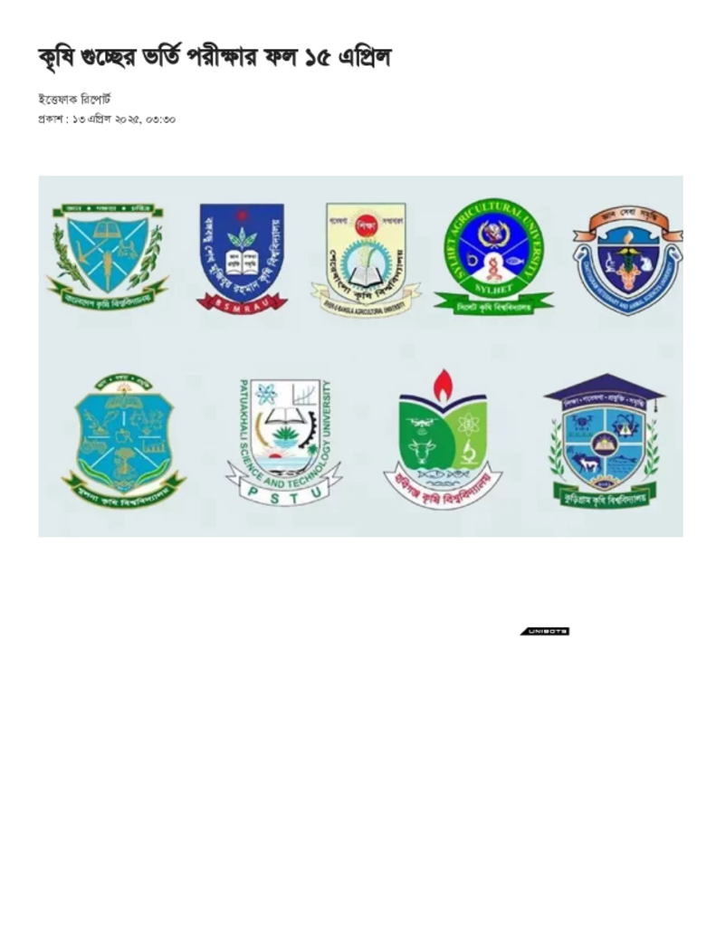 কৃষি গুচ্ছের ভর্তি পরীক্ষার ফল ১৫ এপ্রিল.pdf Published on 13 April 2025 Newspaper দৈনিক ইত্তেফাক Category Admission / Seat Problem General Education Download