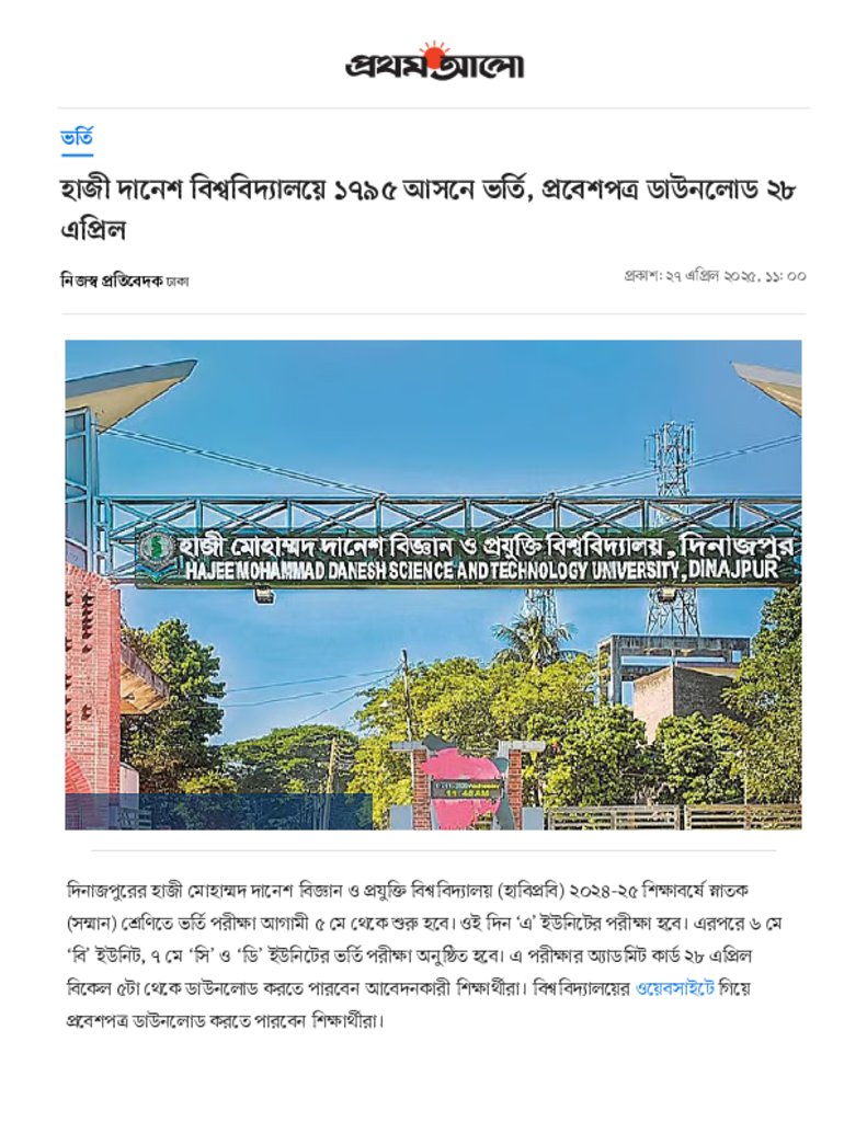 হাজী দানেশ বিশ্ববিদ্যালয়ে ১৭৯৫ আসনে ভর্তি, প্রবেশপত্র ডাউনলোড ২৮ এপ্রিল _ প্রথম আলো.pdf Published on 27 April 2025 Newspaper দৈনিক প্রথম আলো Category Admission / Seat Problem General Education Download