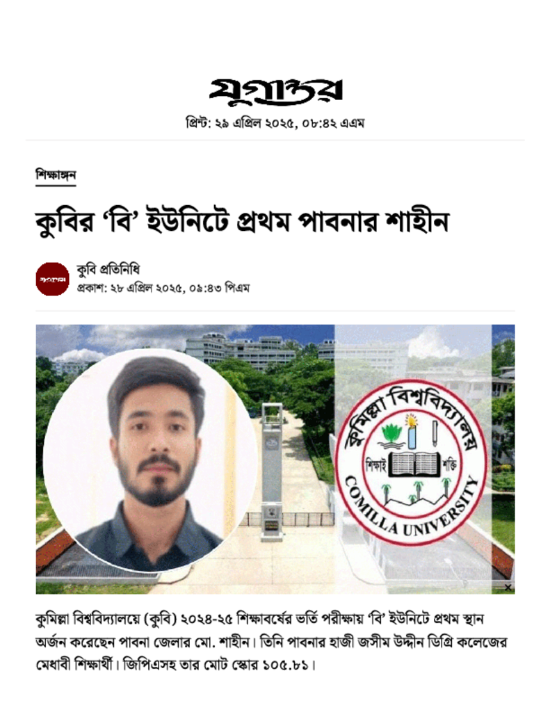 কুবির ‘বি’ ইউনিটে প্রথম পাবনার শাহীন.pdf Published on 28 April 2025 Newspaper দৈনিক যুগান্তর Category Admission / Seat Problem General Education Download