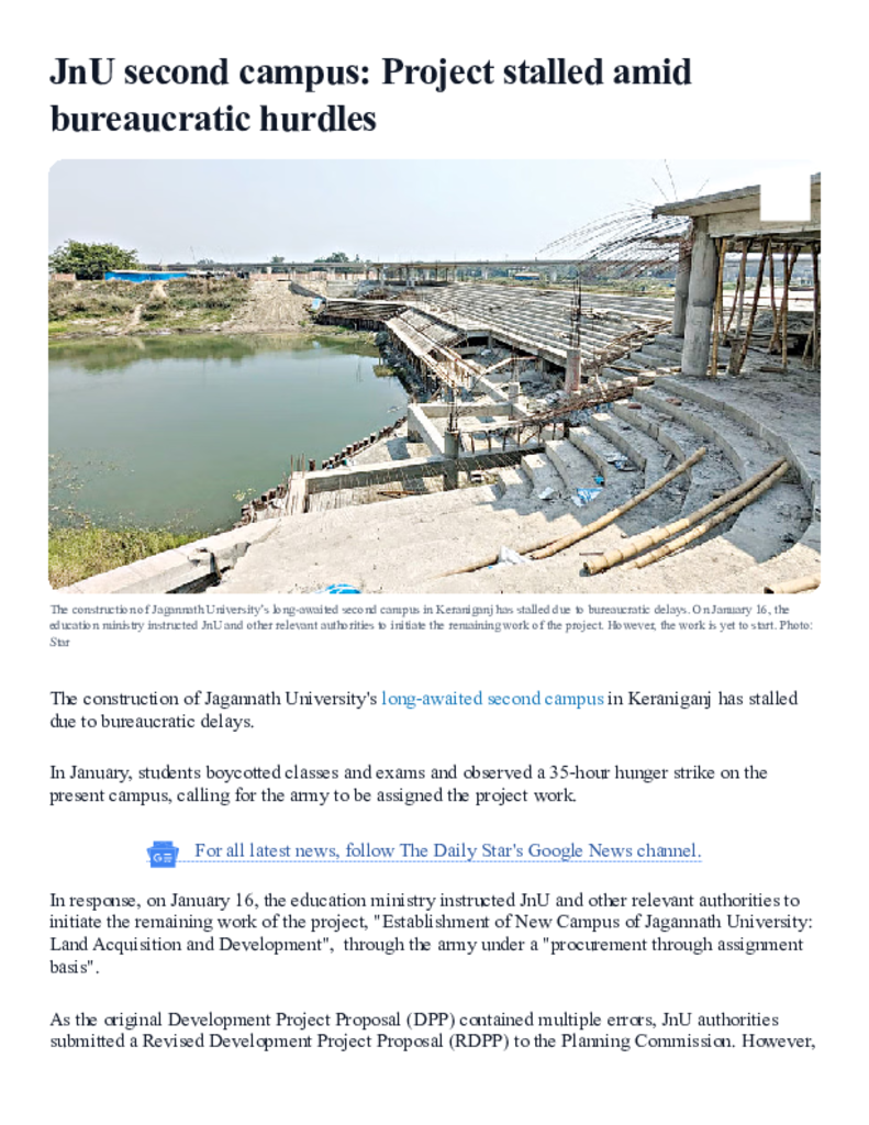 JnU second campus_ Project stalled amid bureaucratic hurdles.pdf Published on 22 April 2025 Newspaper The Daily Star Category Others General Education Download