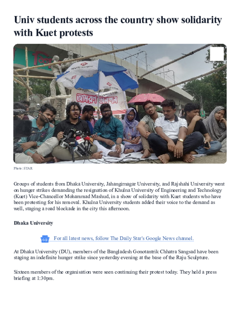 Univ students across the country show solidarity with Kuet protests _ The Daily Star.pdf Published on 23 April 2025 Newspaper The Daily Star Category Others General Education Download