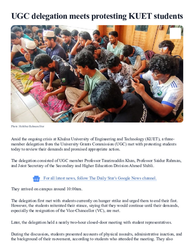 UGC delegation meets protesting KUET students _ The Daily Star.pdf Published on 23 April 2025 Newspaper The Daily Star Category Others General Education Download