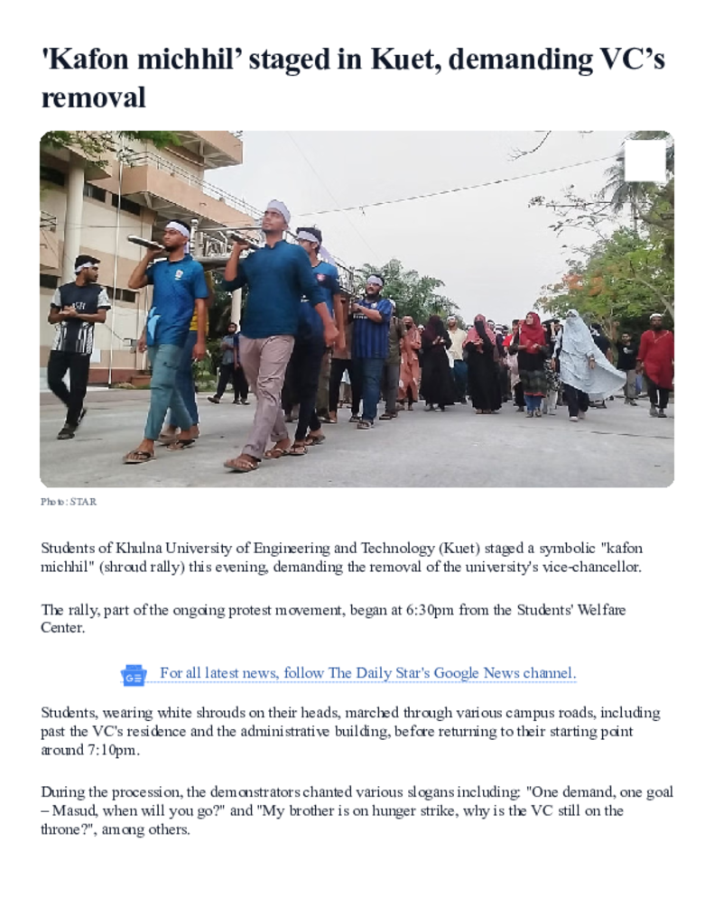 'Kafon michhil’ staged in Kuet, demanding VC’s removal _ The Daily Star.pdf Published on 23 April 2025 Newspaper The Daily Star Category Others General Education Download