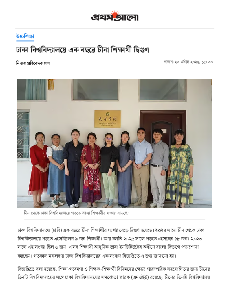 ঢাকা বিশ্ববিদ্যালয়ে এক বছরে চীনা শিক্ষার্থী দ্বিগুণ.pdf Published on 23 April 2025 Newspaper দৈনিক প্রথম আলো Category Others General Education Download