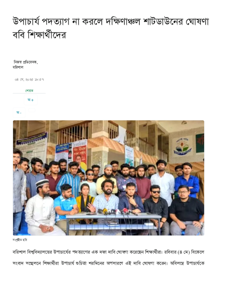 উপাচার্য পদত্যাগ না করলে দক্ষিণাঞ্চল শাটডাউনের ঘোষণা ববি শিক্ষার্থীদের.pdf Published on 04 May 2025 Newspaper দৈনিক কালের কন্ঠ Category Others Download