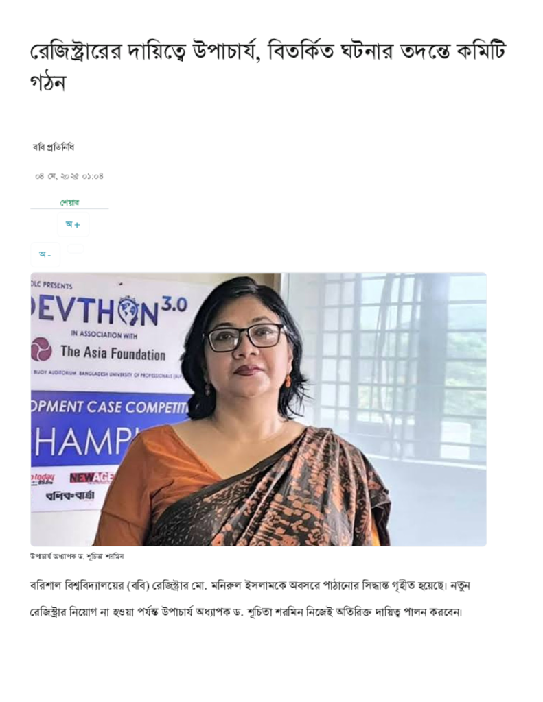 রেজিস্ট্রারের দায়িত্বে উপাচার্য, বিতর্কিত ঘটনার তদন্তে কমিটি গঠন.pdf Published on 04 May 2025 Newspaper দৈনিক কালের কন্ঠ Category Others Download