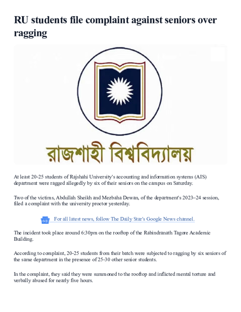 RU students file complaint against seniors over ragging _ The Daily Star.pdf
