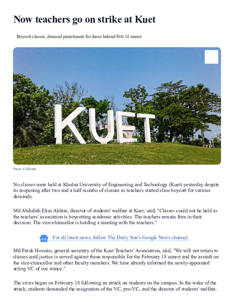 Now teachers go on strike at Kuet _ The Daily Star.pdf Published on 05 May 2025 Newspaper The Daily Star Category Others General Education Download