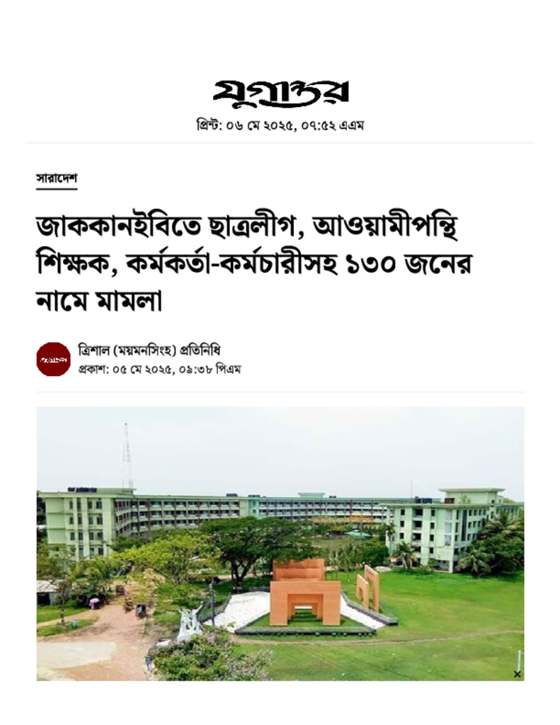আওয়ামীপন্থি শিক্ষক, কর্মকর্তা-কর্মচারীসহ ১৩০ জনের নামে মামলা.pdf Published on 05 May 2025 Newspaper দৈনিক যুগান্তর Category Others Download