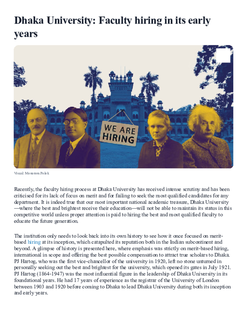 Dhaka University Faculty Hiring Process _ Dhaka University_ Faculty hiring in its early years.pdf Published on 06 May 2025 Newspaper The Daily Star Category General Education General Education Download