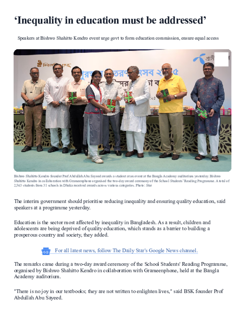 ‘Inequality in education must be addressed’.pdf Published on 10 May 2025 Newspaper The Daily Star Category Personal Opinion / Discussion / Commentary Download