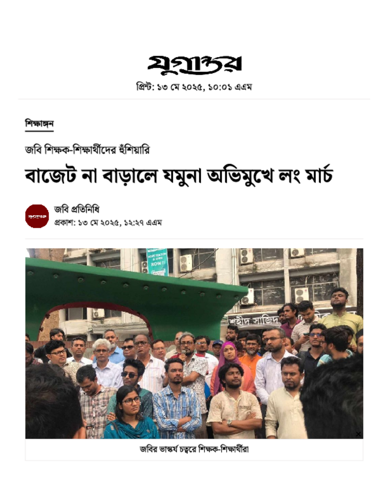 বাজেট না বাড়ালে যমুনা অভিমুখে লং মার্চ.pdf Published on 13 May 2025 Newspaper দৈনিক যুগান্তর Category General Education General Education Download