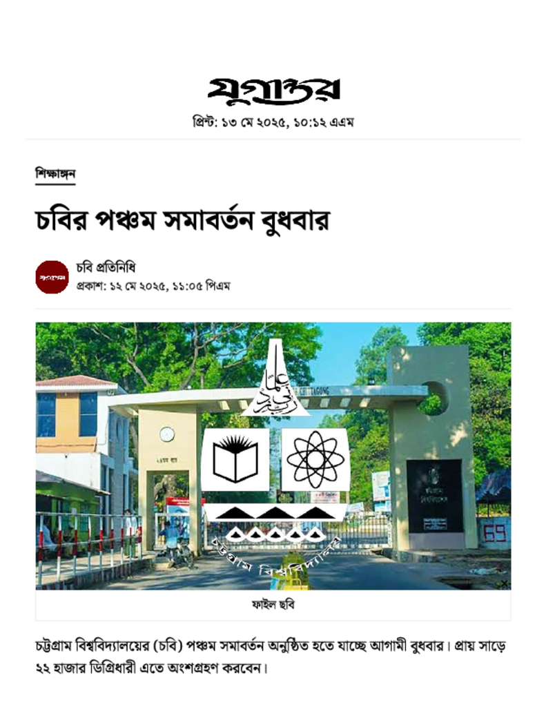 চবির পঞ্চম সমাবর্তন বুধবার.pdf Published on 12 May 2025 Newspaper দৈনিক যুগান্তর Category General Education General Education Download