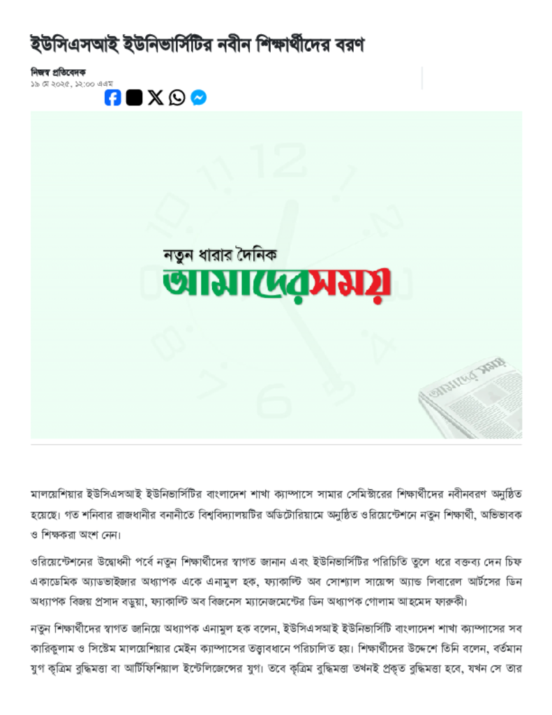 ইউসিএসআই ইউনিভার্সিটির নবীন শিক্ষার্থীদের বরণ.pdf Published on 19 May 2025 Newspaper দৈনিক আমাদের সময় Category Admission / Seat Problem General Education Download