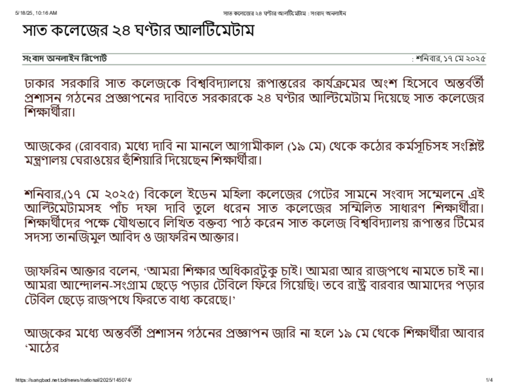 সাত কলেজের ২৪ ঘণ্টার আলটিমেটাম _ সংবাদ অনলাইন.pdf
