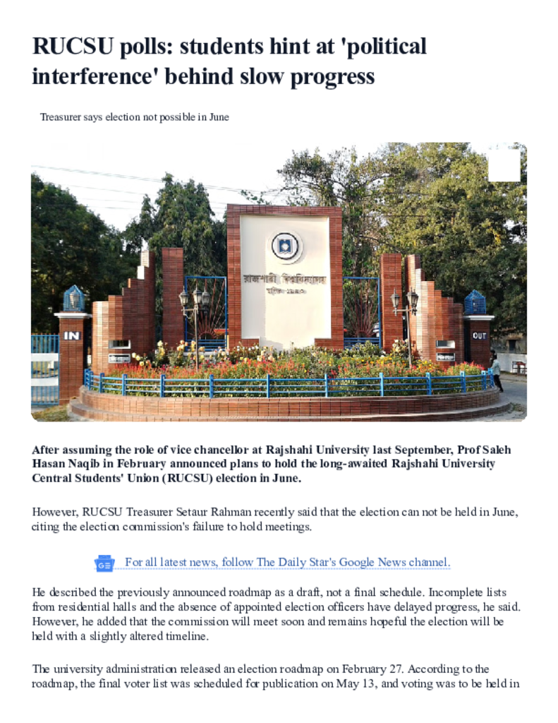 RUCSU polls_ students hint at 'political interference' behind slow progress _ The Daily Star.pdf Published on 20 May 2025 Newspaper The Daily Star Category Student Politics General Education Download
