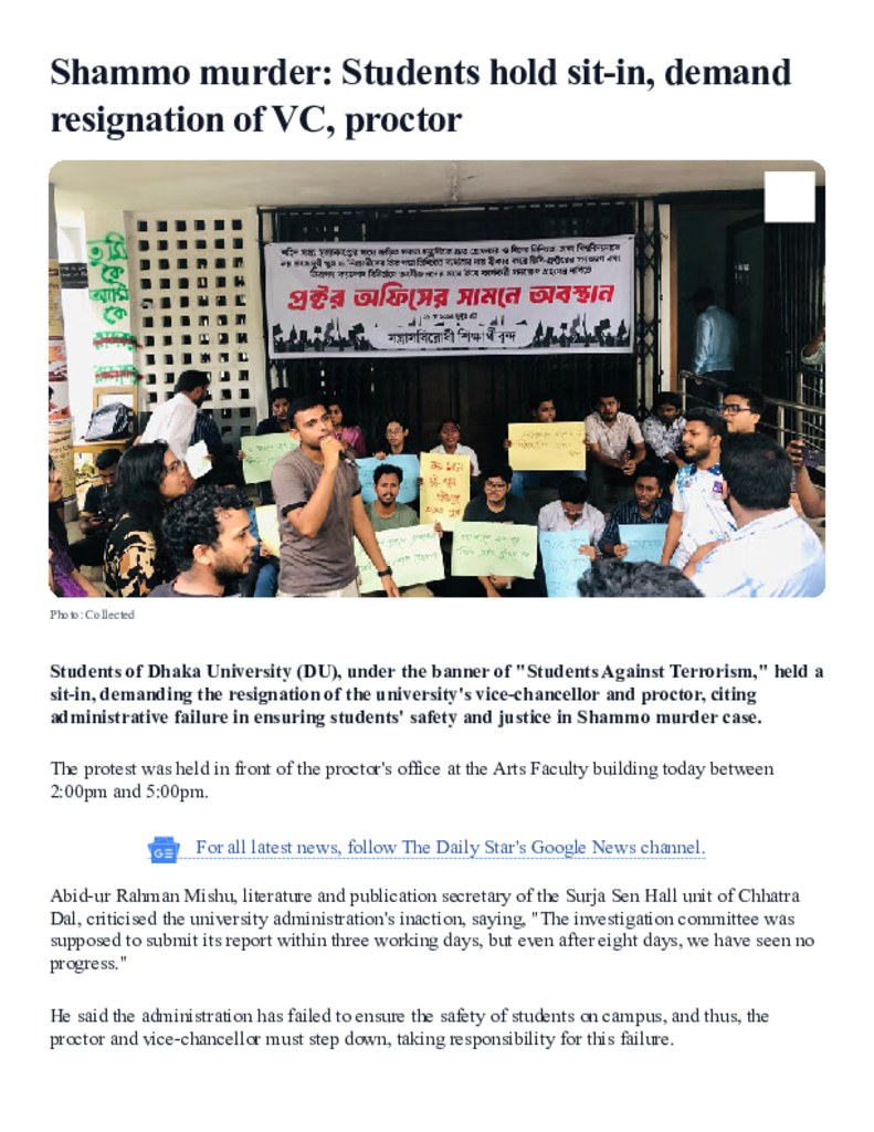 Shammo murder_ Students hold sit-in, demand resignation of VC, proctor _ The Daily Star.pdf Published on 21 May 2025 Newspaper The Daily Star Category Others General Education Download