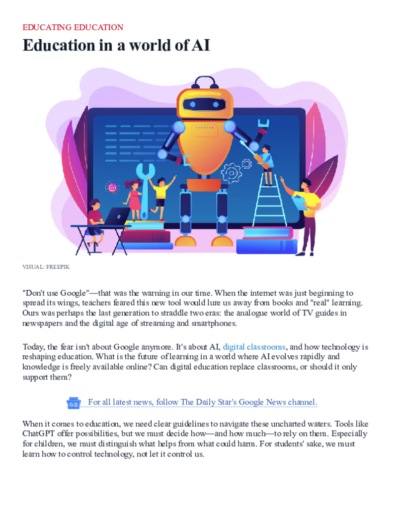 Impact Of AI On Education _ Education in a world of AI.pdf Published on 23 May 2025 Newspaper The Daily Star Category Personal Opinion / Discussion / Commentary Download