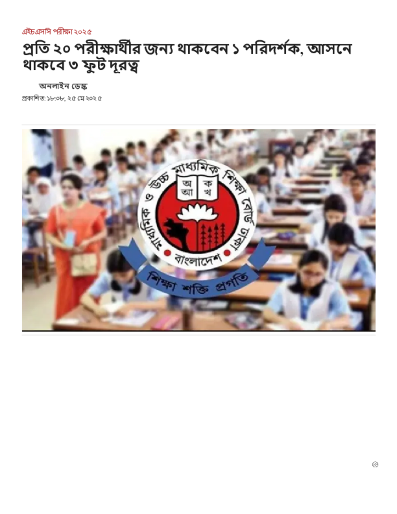 প্রতি ২০ পরীক্ষার্থীর জন্য থাকবেন ১ পরিদর্শক, আসনে থাকবে ৩ ফুট দূরত্ব.pdf Published on 25 May 2025 Newspaper দৈনিক জনকণ্ঠ Category Educational Ministry / Departments Download