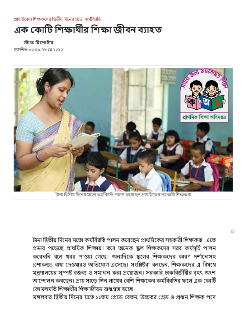 এক কোটি শিক্ষার্থীর শিক্ষা জীবন ব্যাহত.pdf Published on 28 May 2025 Newspaper দৈনিক জনকণ্ঠ Category Personal Opinion / Discussion / Commentary General Education Download