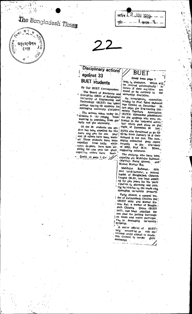 Disciplinary actions agenst 33 buet students Published on Newspaper The Bangladesh Times Category Professional Education Professional Education Engineering Download