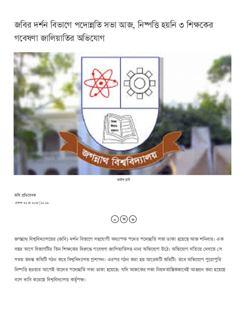 জবির দর্শন বিভাগে পদোন্নতি সভা আজ, নিষ্পত্তি হয়নি ৩ শিক্ষকের গবেষণা জালিয়াতির অভিযোগ.pdf Published on 30 May 2025 Newspaper দৈনিক সমকাল Category Others General Education Download
