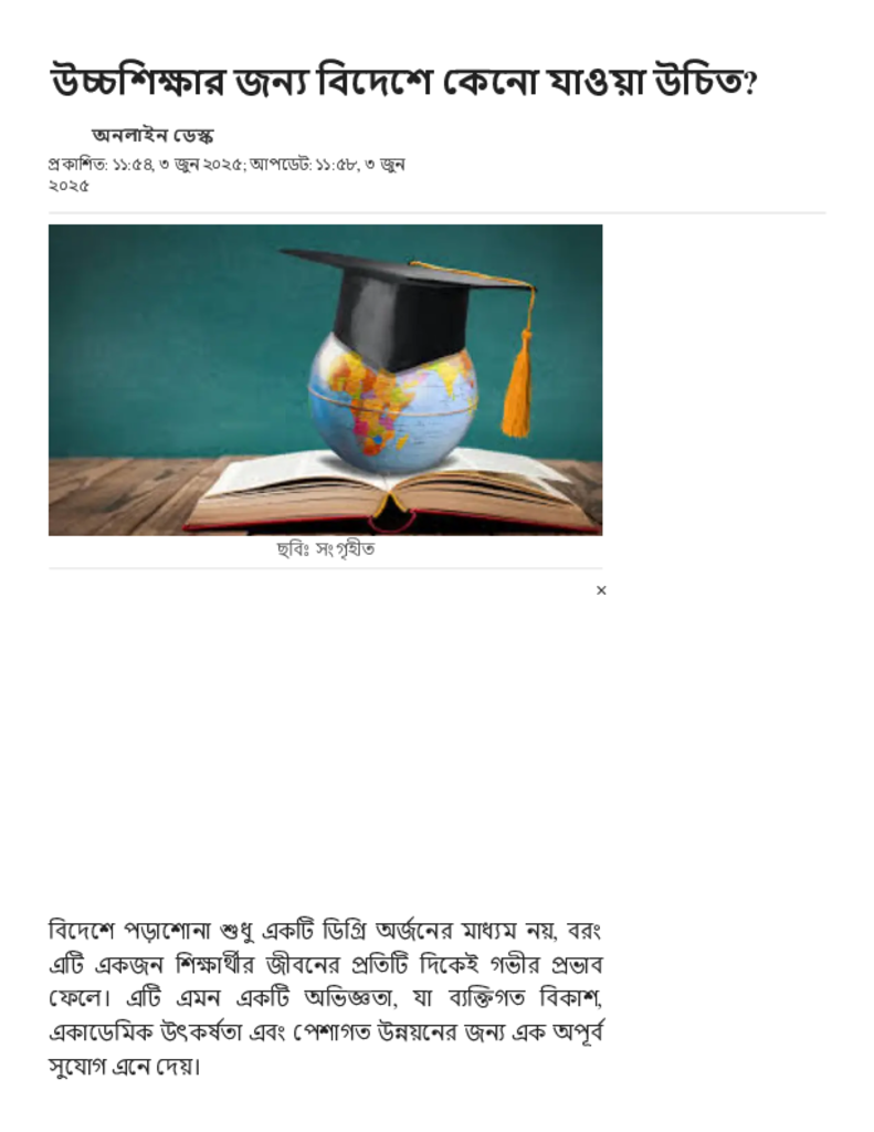 উচ্চশিক্ষার জন্য বিদেশে কেনো যাওয়া উচিত_.pdf Published on 03 June 2025 Newspaper দৈনিক জনকণ্ঠ Category Personal Opinion / Discussion / Commentary General Education Download