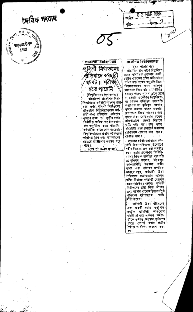 পুলিশী নির্যাতনের প্রতিবাদে কর্মচারী ধর্মঘট। পরীক্ষা হতেপারেনি Published on Newspaper দৈনিক সংবাদ Category Professional Education Professional Education Engineering Download