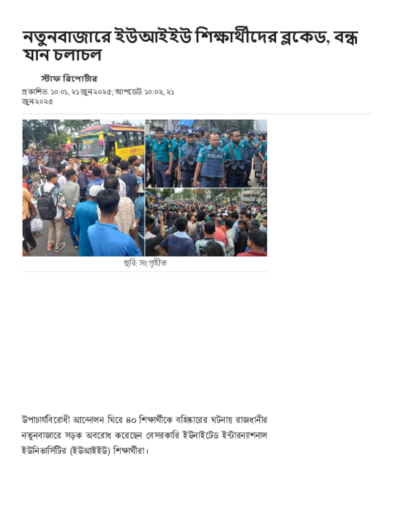 নতুনবাজারে ইউআইইউ শিক্ষার্থীদের ব্লকেড, বন্ধ যান চলাচল.pdf