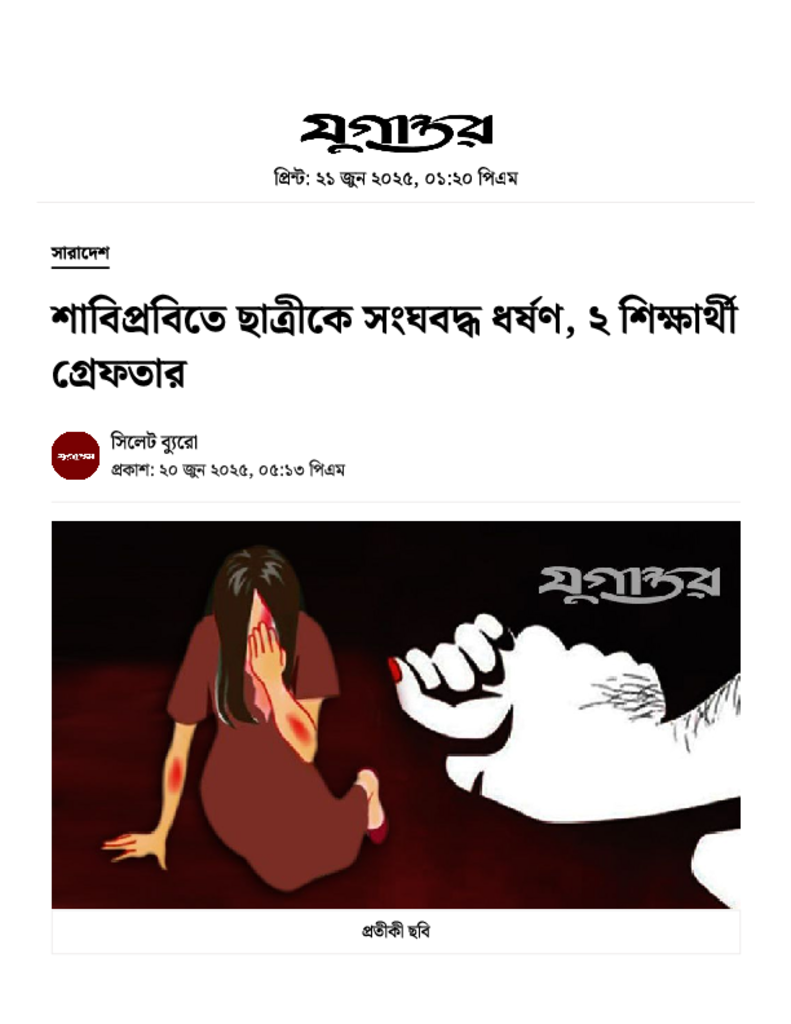 শাবিপ্রবিতে ছাত্রীকে সংঘবদ্ধ ধর্ষণ, ২ শিক্ষার্থী গ্রেফতার.pdf Published on 20 June 2025 Newspaper দৈনিক যুগান্তর Category Campus Terrorism General Education Download