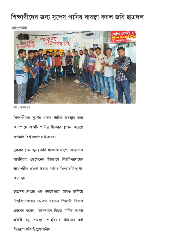 শিক্ষার্থীদের জন্য সুপেয় পানির ব্যবস্থা করল জবি ছাত্রদল.pdf Published on 18 June 2025 Newspaper দৈনিক কালের কন্ঠ Category Others Download