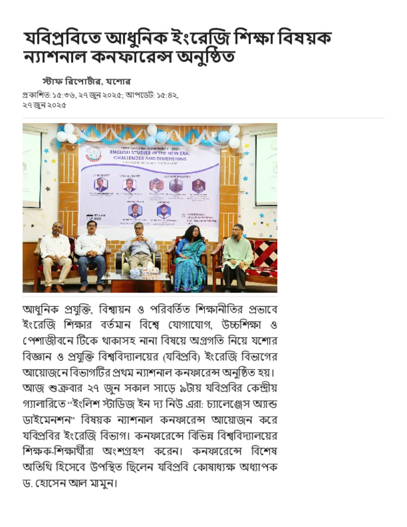 যবিপ্রবিতে আধুনিক ইংরেজি শিক্ষা বিষয়ক ন্যাশনাল কনফারেন্স অনুষ্ঠিত.pdf Published on 27 June 2025 Newspaper দৈনিক জনকণ্ঠ Category Others General Education Download