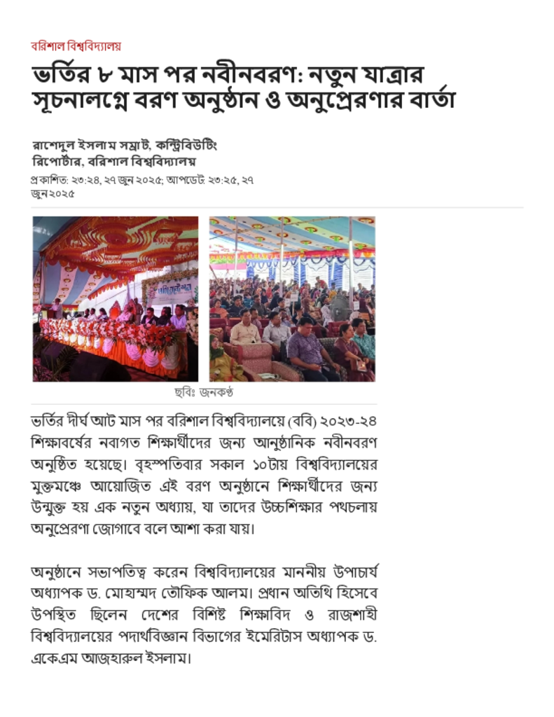 ভর্তির ৮ মাস পর নবীনবরণ_ নতুন যাত্রার সূচনালগ্নে বরণ অনুষ্ঠান ও অনুপ্রেরণার বার্তা.pdf Published on 27 June 2025 Newspaper দৈনিক জনকণ্ঠ Category Admission / Seat Problem General Education Download