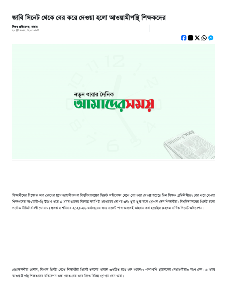 জাবি সিনেট থেকে বের করে দেওয়া হলো আওয়ামীপন্থি শিক্ষকদের.pdf Published on 29 June 2025 Newspaper দৈনিক আমাদের সময় Category Others General Education Download
