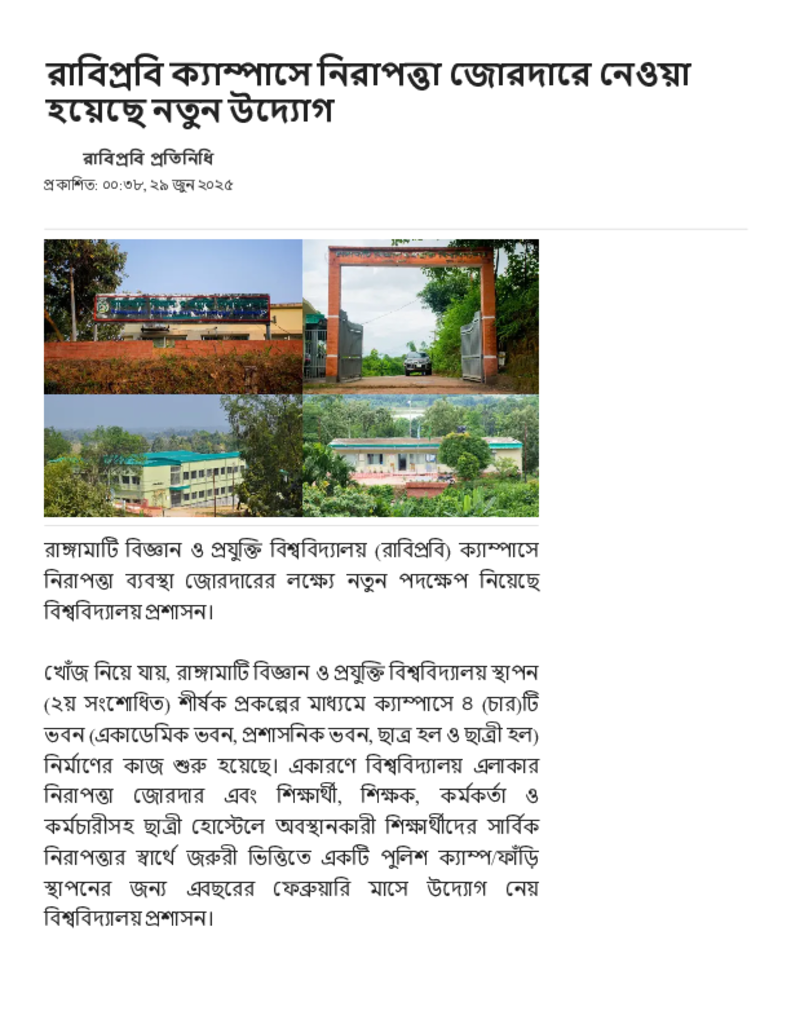 রাবিপ্রবি ক্যাম্পাসে নিরাপত্তা জোরদারে নেওয়া হয়েছে নতুন উদ্যোগ.pdf Published on 29 June 2025 Newspaper দৈনিক জনকণ্ঠ Category General Education General Education Download