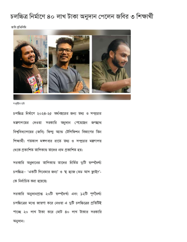 চলচ্চিত্র নির্মাণে ৪০ লাখ টাকা অনুদান পেলেন জবির ৩ শিক্ষার্থী.pdf Published on 02 July 2025 Newspaper দৈনিক কালের কন্ঠ Category Others Download