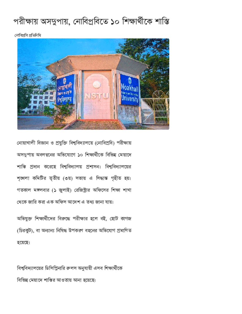পরীক্ষায় অসদুপায়, নোবিপ্রবিতে ১০ শিক্ষার্থীকে শাস্তি.pdf Published on 02 July 2025 Newspaper দৈনিক কালের কন্ঠ Category Others General Education Download