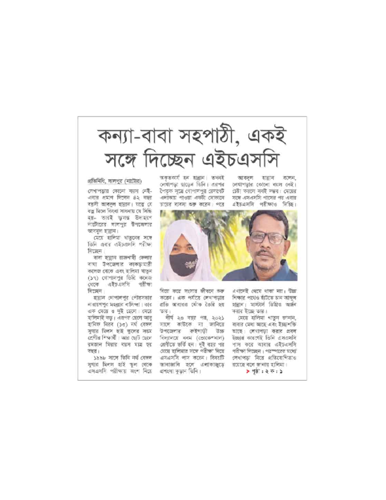 কন্যা-বাবা সহপাঠী, একই সঙ্গে দিচ্ছেন এইচএসসি.pdf Published on 03 July 2025 Newspaper দৈনিক সংবাদ Category Public Examination Download