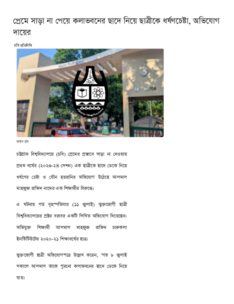 প্রেমে সাড়া না পেয়ে কলাভবনের ছাদে নিয়ে ছাত্রীকে ধর্ষণচেষ্টা, অভিযোগ দায়ের.pdf