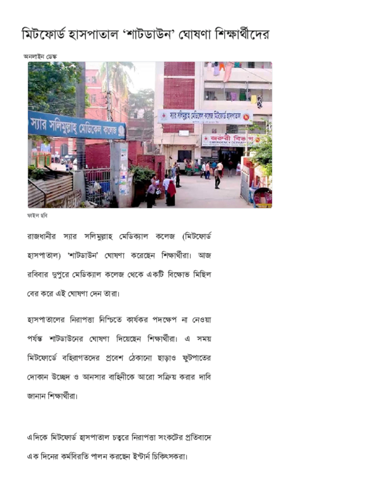 মিটফোর্ড হাসপাতাল ‘শাটডাউন’ ঘোষণা শিক্ষার্থীদের.pdf Published on 13 July 2025 Newspaper দৈনিক কালের কন্ঠ Category Others Professional Education Medical Download