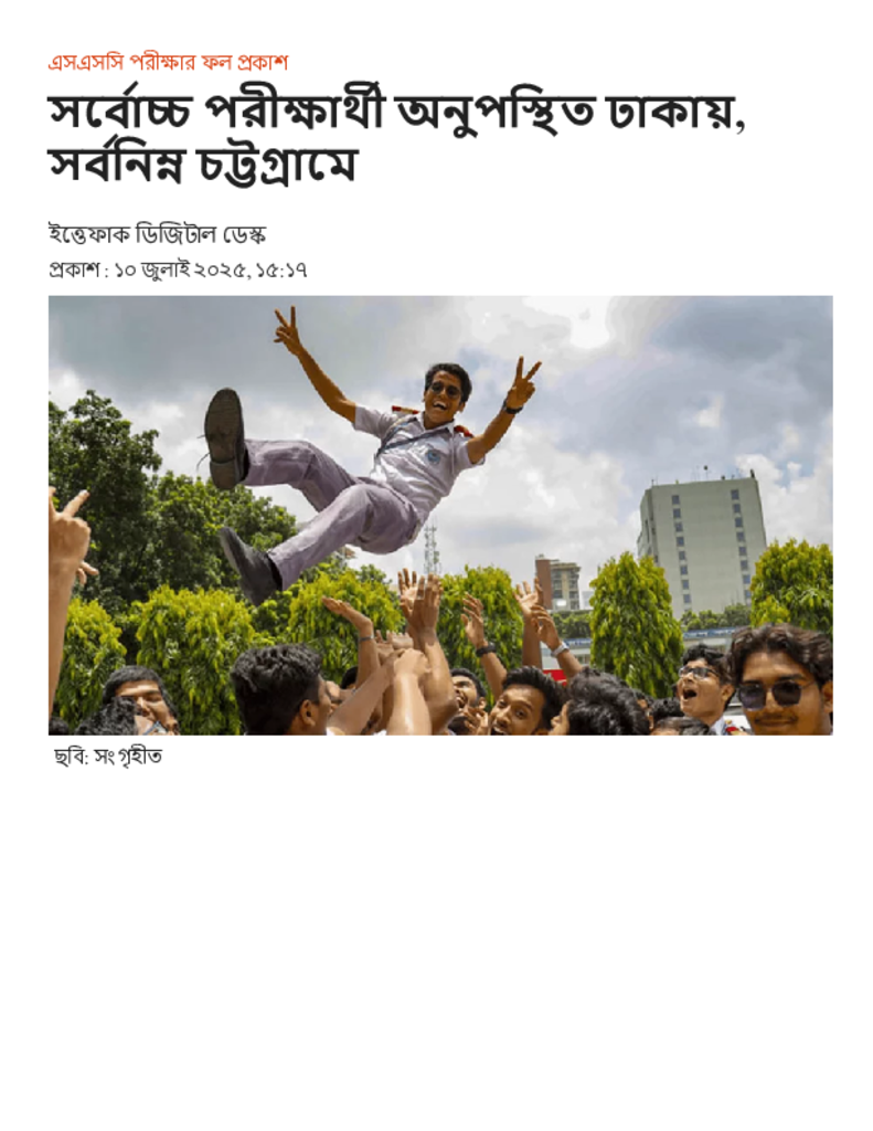 সর্বোচ্চ পরীক্ষার্থী অনুপস্থিত ঢাকায়, সর্বনিম্ন চট্টগ্রামে.pdf Published on 10 July 2025 Newspaper দৈনিক ইত্তেফাক Category Public Examination Public Examination SSC Download